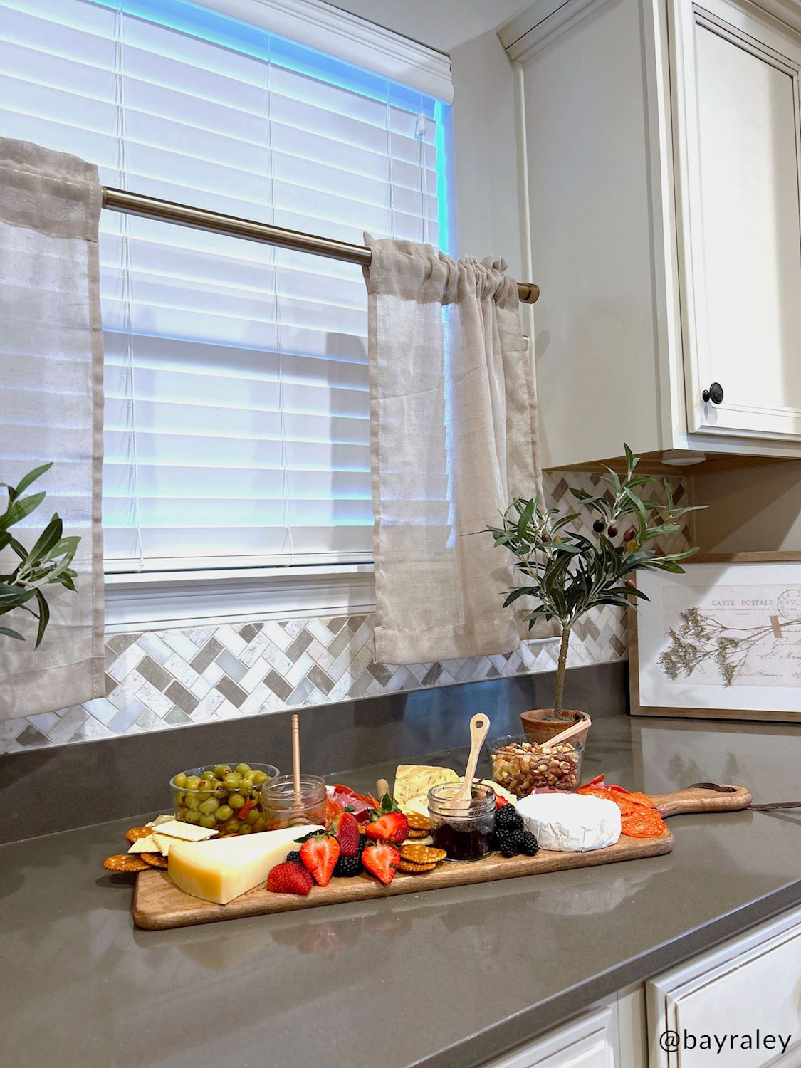 Mango wood paddle board features genuine leather handle loop and engraved surface diagram/guide for building a successful charcuterie board.