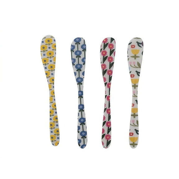 Hazel Mazel 5.25" Enameled Stainless Steel Spoons (Set of 4) - Flower Pattern Features: