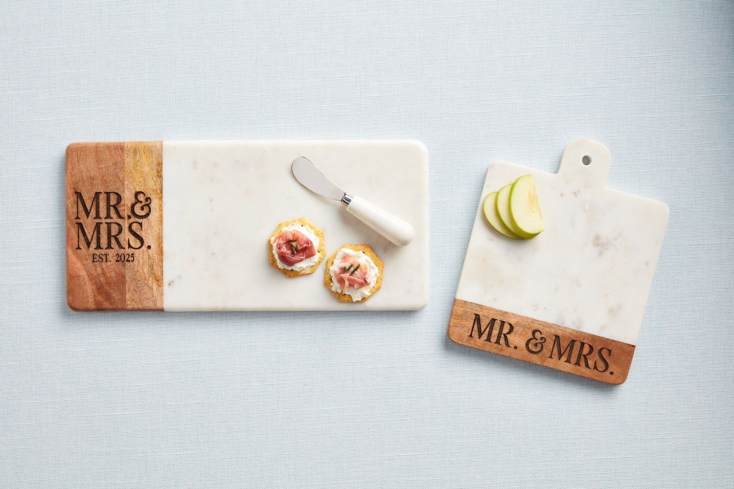 Elevate your kitchen aesthetics with the Mr. & Mrs. Marble Board! This beautifully crafted board not only serves as a unique display piece, but it also provides a durable and stylish surface for all your food preparation needs. Impress your guests and elevate your cooking experience with this must-have kitchen essential.