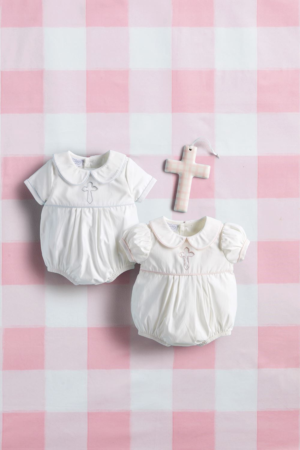 This charming embroidered poplin bubble is a delightful addition to any little one's wardrobe. Crafted with meticulous attention to detail, it features a classic Peter Pan collar that adds a touch of timeless elegance.