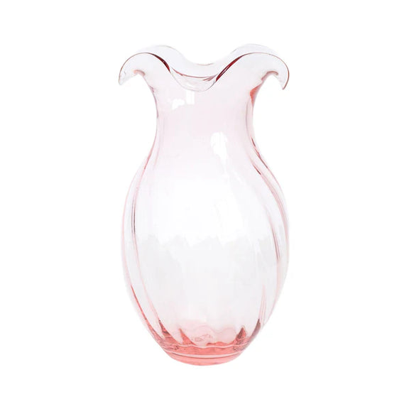 Pink Hibiscus Glass Vertical Fluted Small Vase