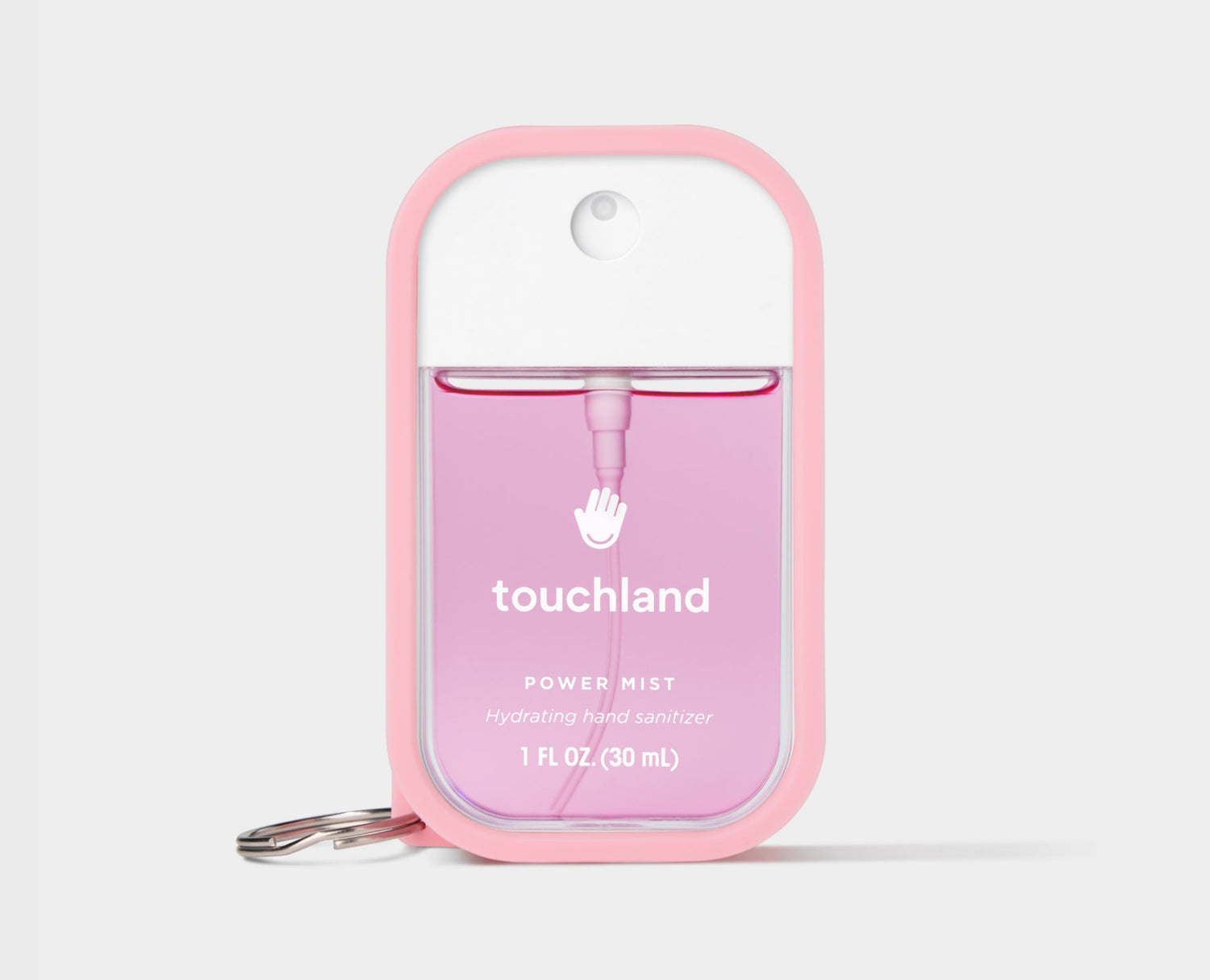 The case features a convenient metal keyring, ensuring your Touchland hand mist is always within reach and easy to access.