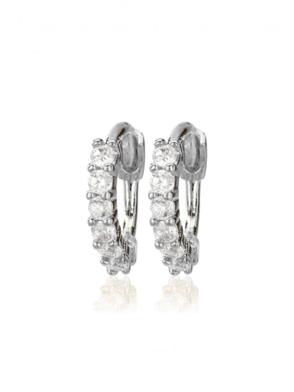 Silver White Half Stone Huggie
