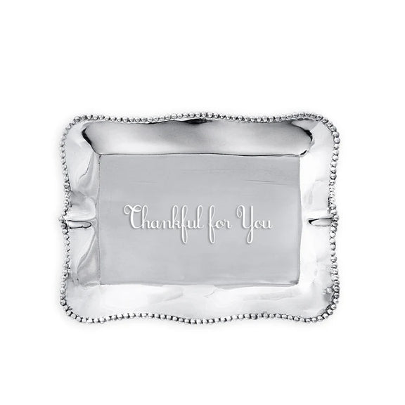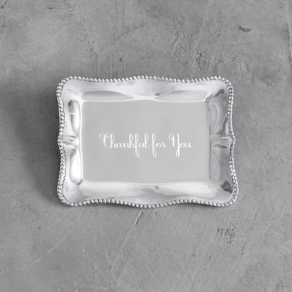 Engraved with the slogan, "Thankful for You," this delightful mini tray is distinguished by its rich, hand finished surface, and practical size.
